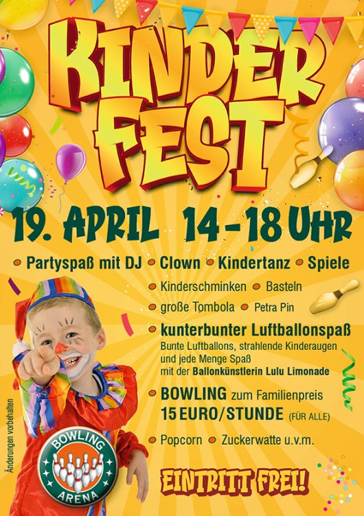 Kinder 7 bis 14 Jahre: 18 € inklusive kleinem Getränk (Cola/Mirinda/SevenUp/Saft)